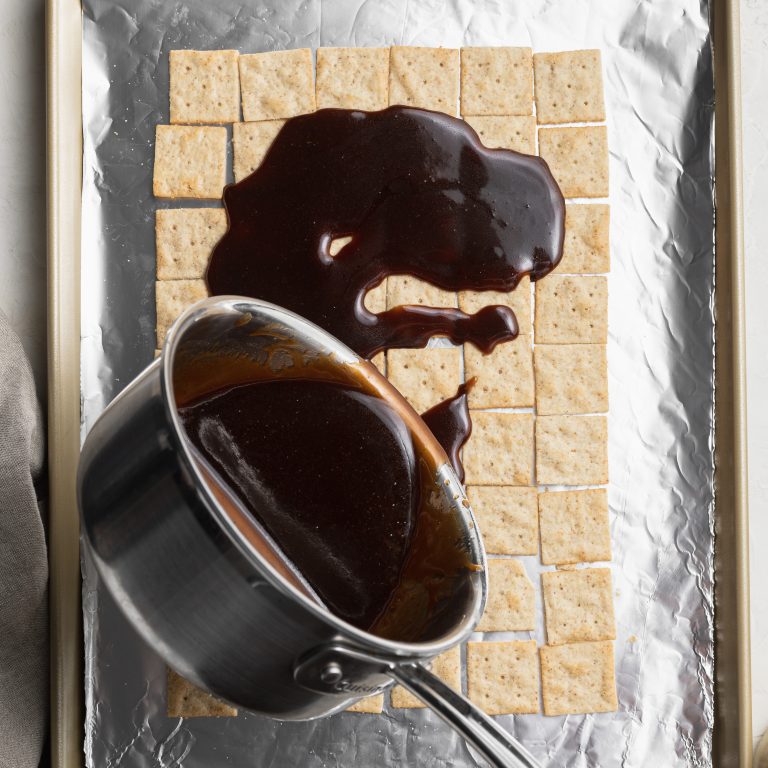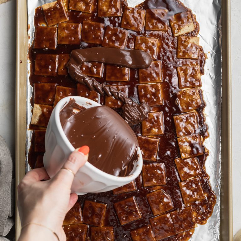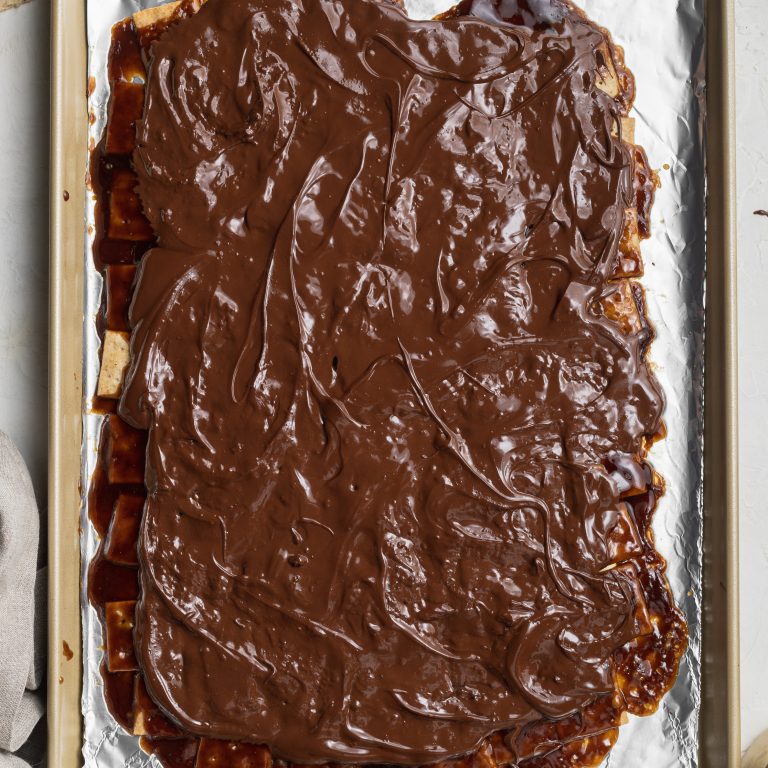 - While not necessary, I recommend storing leftover brittle in an airtight container in your fridge! This will ensure the pieces stay crispy, and the chocolate doesn’t melt.