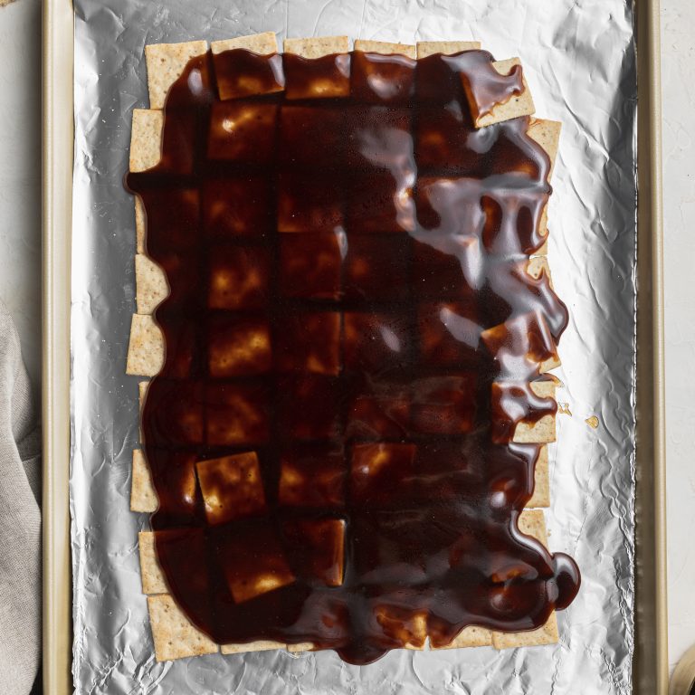 - After 10 minutes of baking, you’ll want to remove your brittle from the oven to gently slice it. For easy slicing, I recommend using a pizza cutter and rolling it through the brittle in all different directions! Though if you don’t have a pizza cutter, use a sharp knife instead.